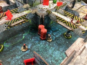 In turn one, Wilson used his Morlocks to throw smoke and tear ass down the edge of the board and cover the approach of his Überfallkommando, who nuked my Interventor Lt and Iguana before I knew what was happening, so I started the game in Loss of Lieutenant. After that, though, Kriza Boracs was able to hold the line, my Morans were able to defend themselves against the Morlocks and Zeroes sent against them. What appeared to be an Intruder turned out to be my one specialist: the Bandit Hacker, who was able to nail both Classifieds.
