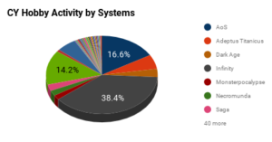 - Finish, Paint – Success. I finished a Warsenal table, dang near anything I could need for the ISS sectorial, everything else I might need for the Corregidor sectorial, a couple of small project for NOCF, a Necromunda gang that’s yet to see action, and all of the Adeptus Titanicus models I picked up. I’ve been in a really healthy place where I take on a handy-sized project, work it, then move on to the next one. That’s where I want to be.On the other hand, I built an AoS army that I’m not likely to make any headway on any time soon. I’ve picked up a disconcerting amount of A Song of Ice and Fire models that will stay bare plastic.