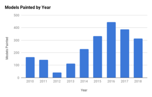- December kind of didn’t happen. I moved around the furniture in my hobby room, which was disruptive, and did a ton of travel, which was also disruptive. In the end, I painted nothing. In the end, I pretty much just played video games. I did run a quarterly on my birthday, though.