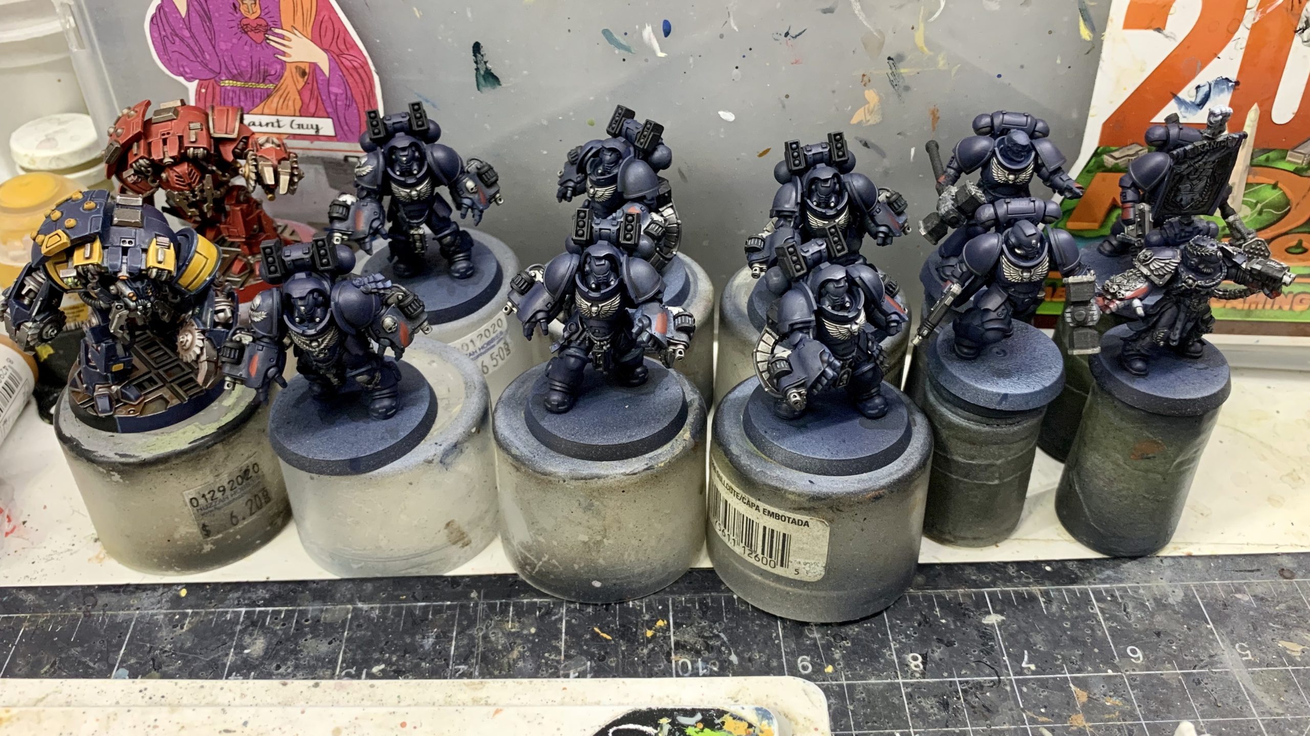 Back to Fisting it up. Just need to slap decals and varnish on the Ambots. Kantor looks ridiculous next to these primaris. I hope he gets a upgrade with the new codex.