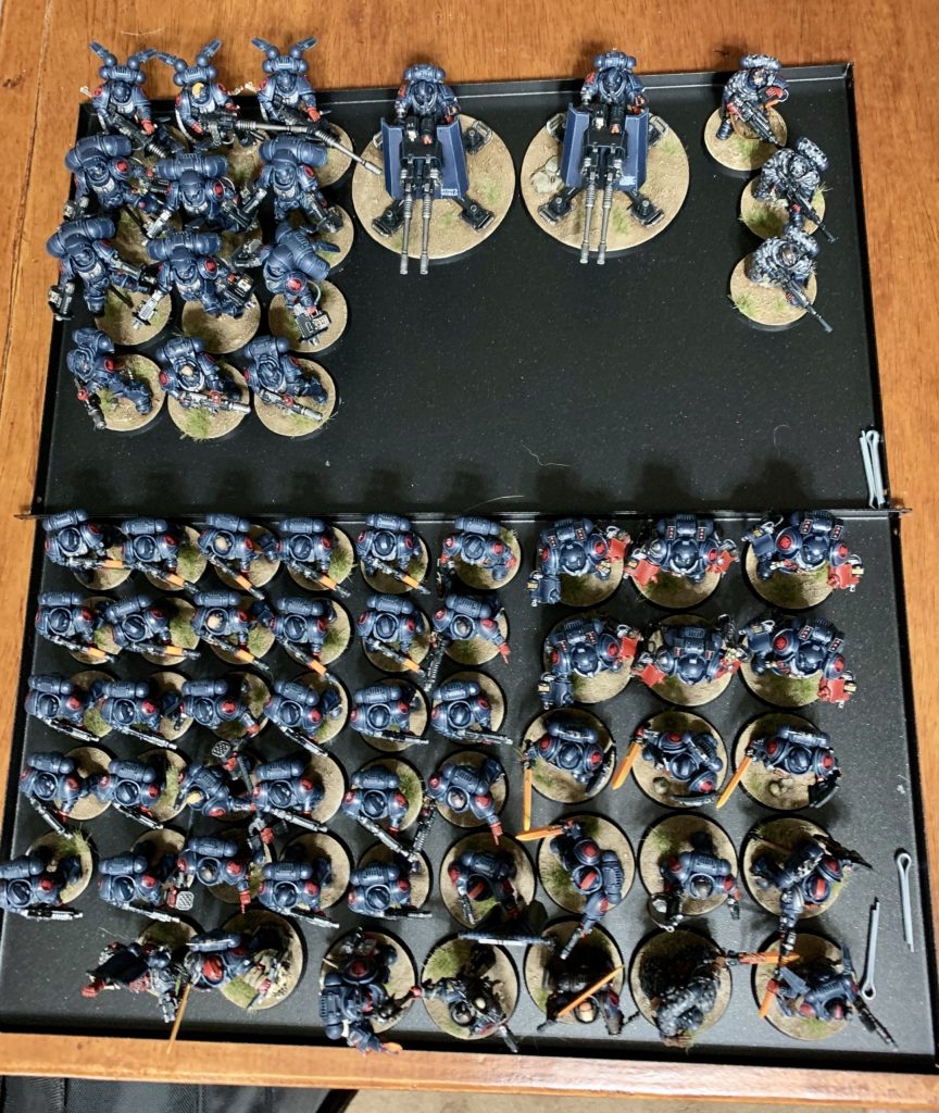 This is the state of my painted Crimson Fists. Almost everything I have is painted at this point except for the 10x Infiltrators above, 10x Incursors, 10x Assault Intercessors, 3x Outriders, a Librarian, and an Invictus Warsuit. Crap; that’s actually more than I’d thought when I started enumerating everything. :(
