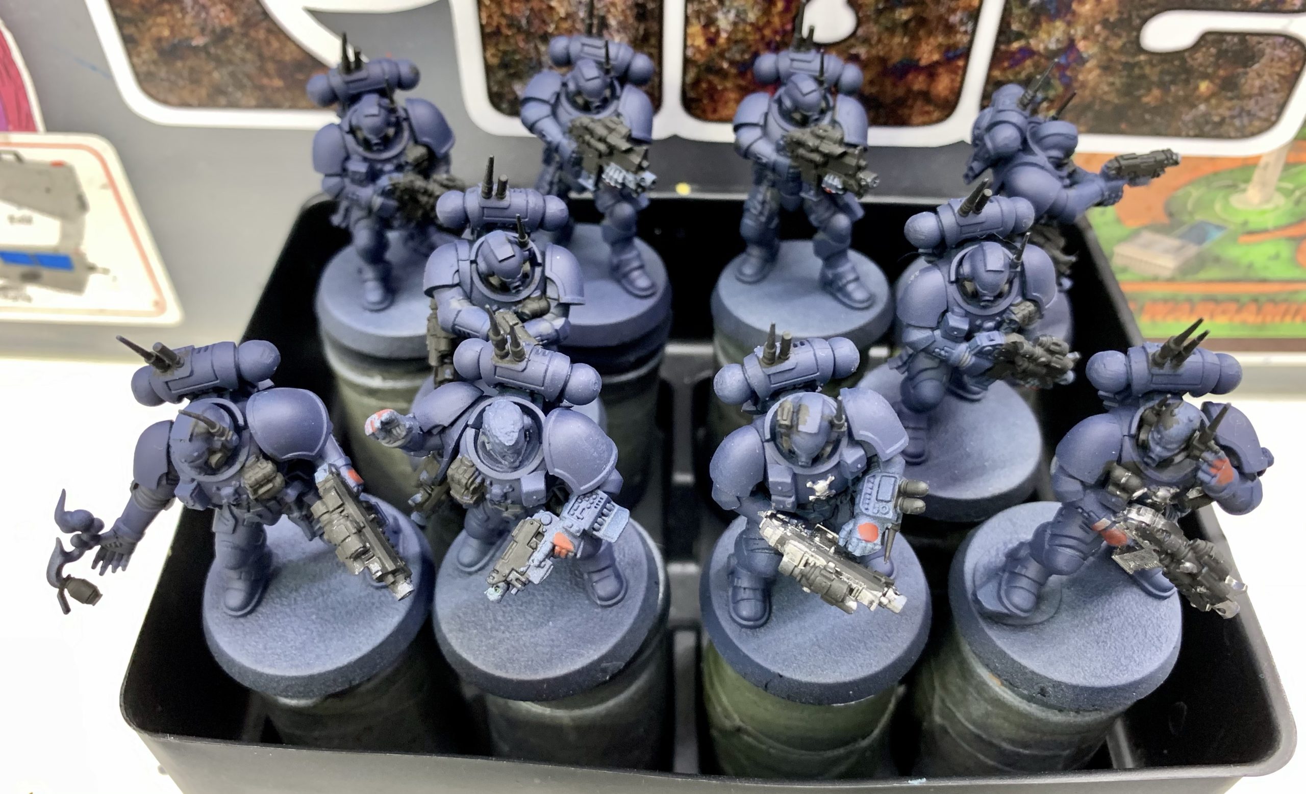 Started these Infiltrators when I started the turrets, but I’m not feeling them. Likely I’m getting burned out on painting Crimson Fists, and need to work on something else for a bit.