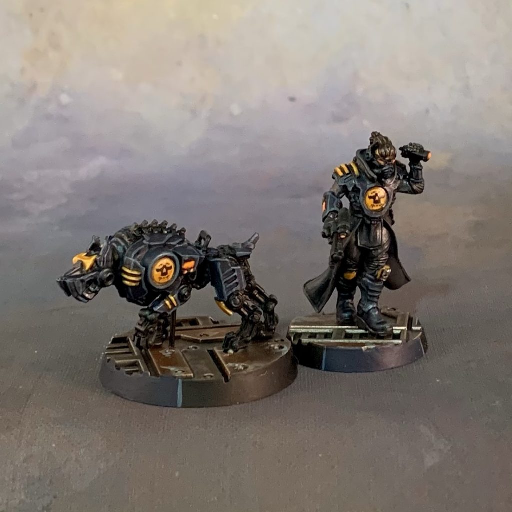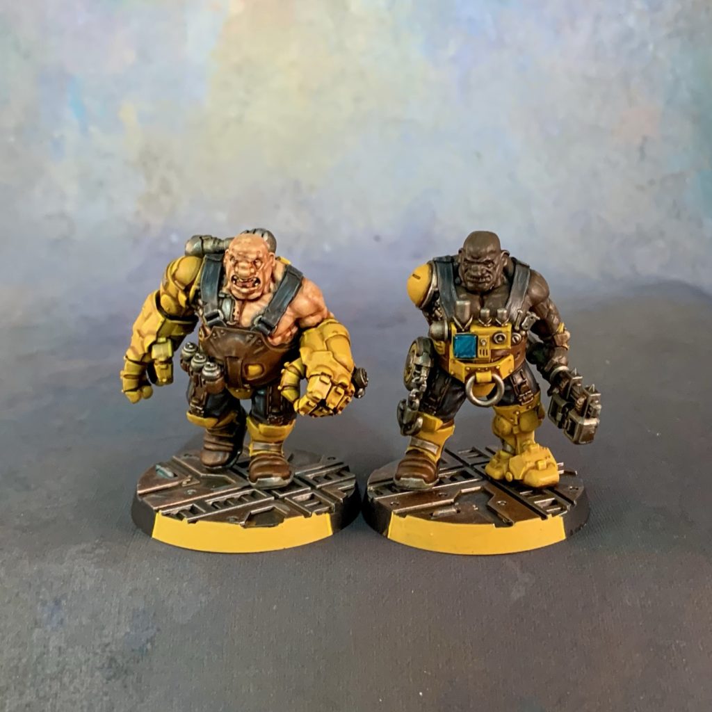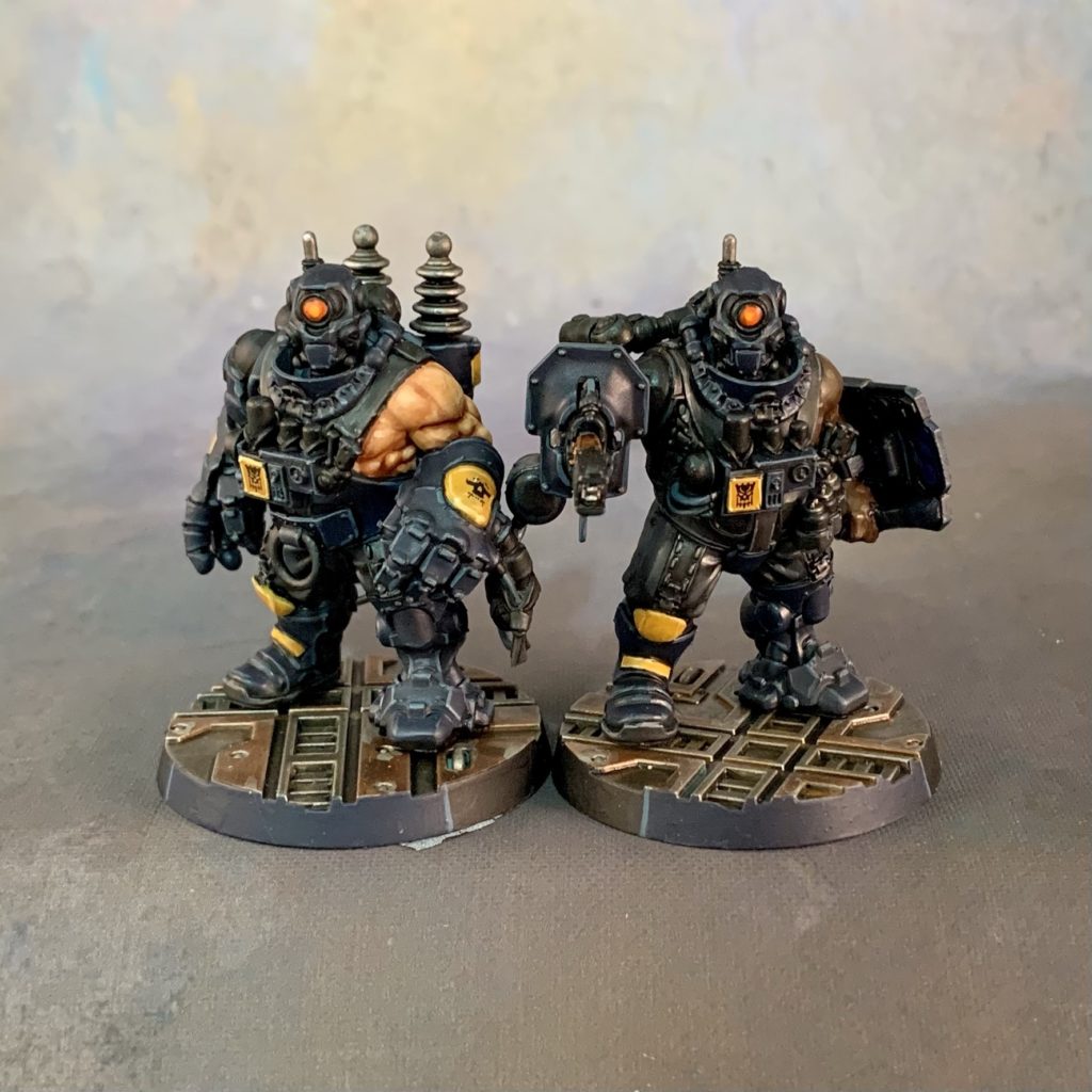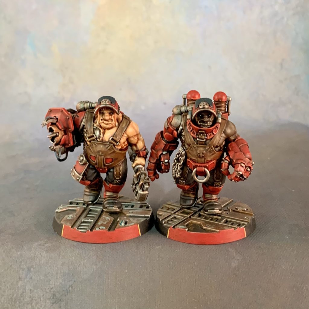 I also banged out the box of Slave Ogryn models in pretty speedy time: I did 2 each for my Goliaths and Enforcers and then 2 more just in their own scheme. I also painted up the Enforcer Null & robo dog.