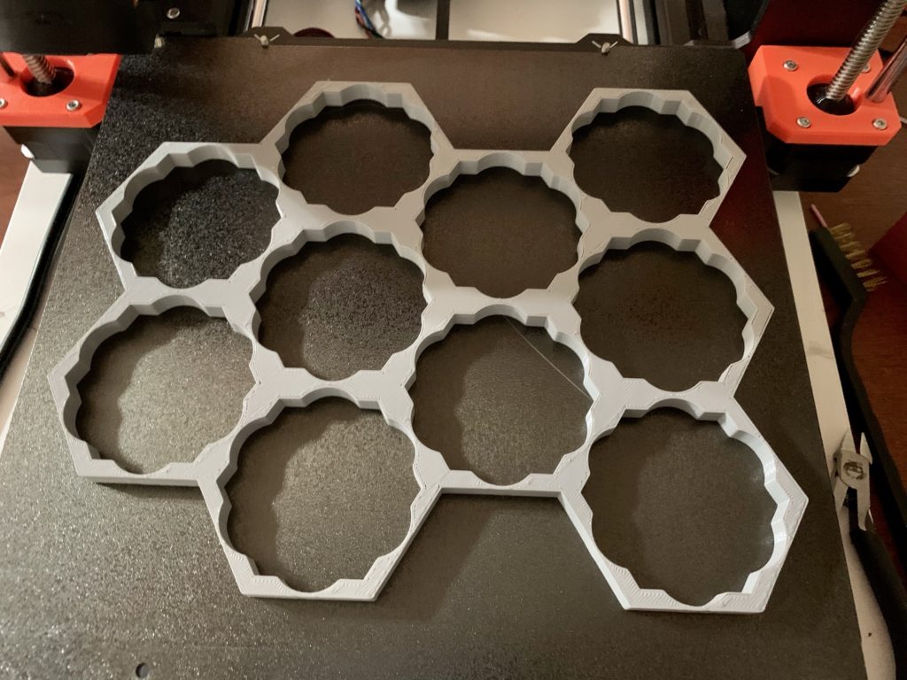 Some variations of this to fill out a Sterilite Stack-and-Carry (this is the largest size I can fit on my print bed, but multiple jobs and some glue can work around that). Between these and a thin sheet of foam across the top to keep things from popping up out of their hexes and I think I’m solid.