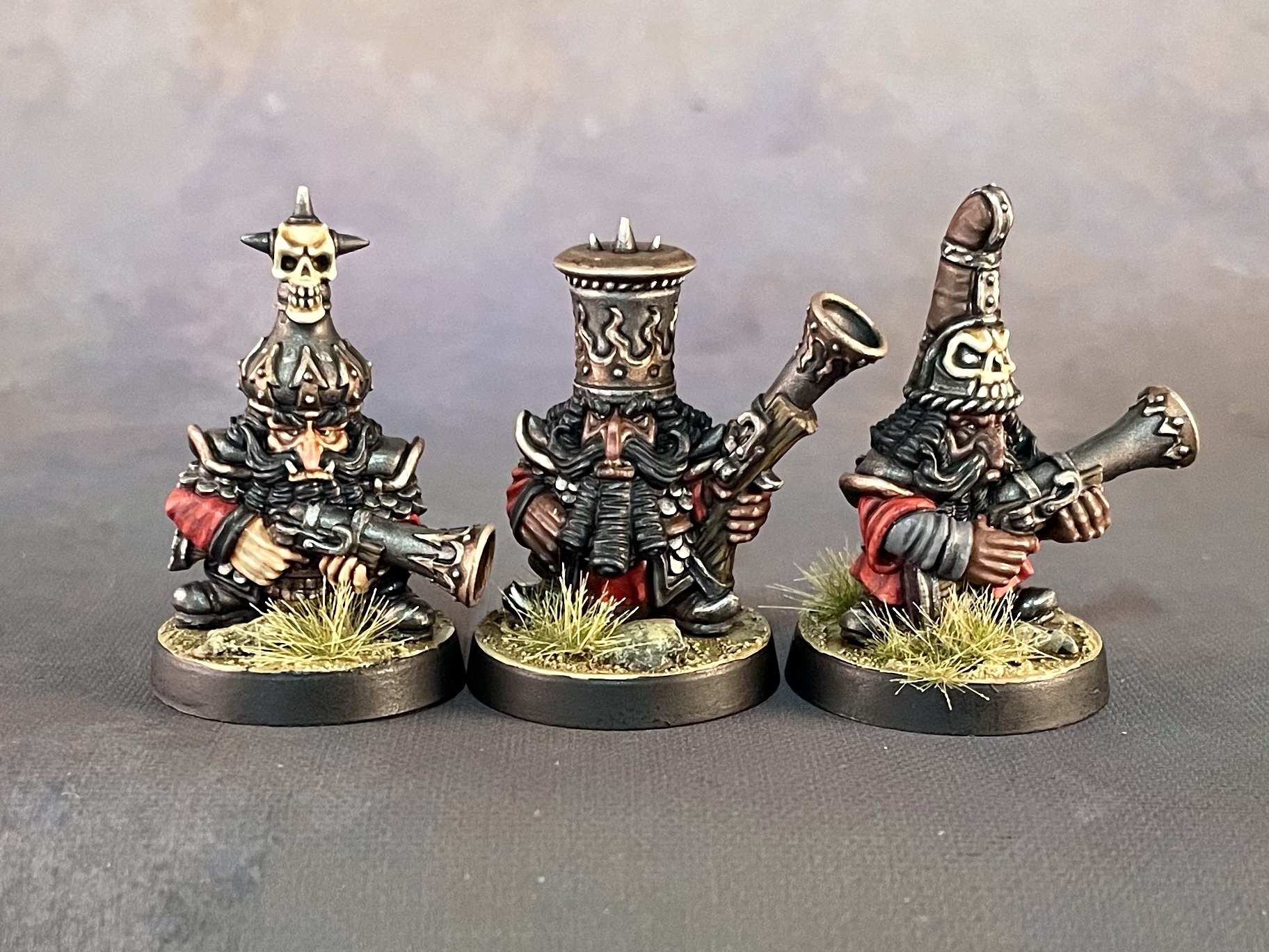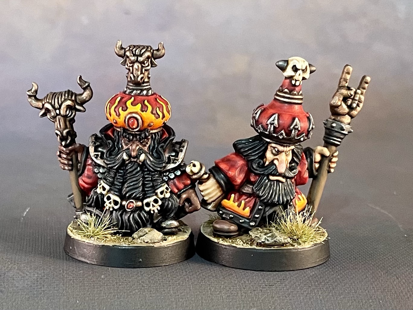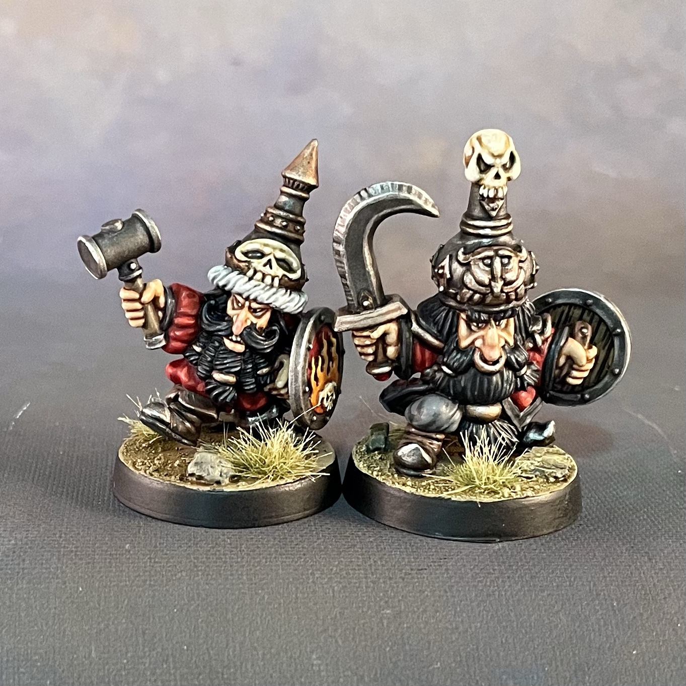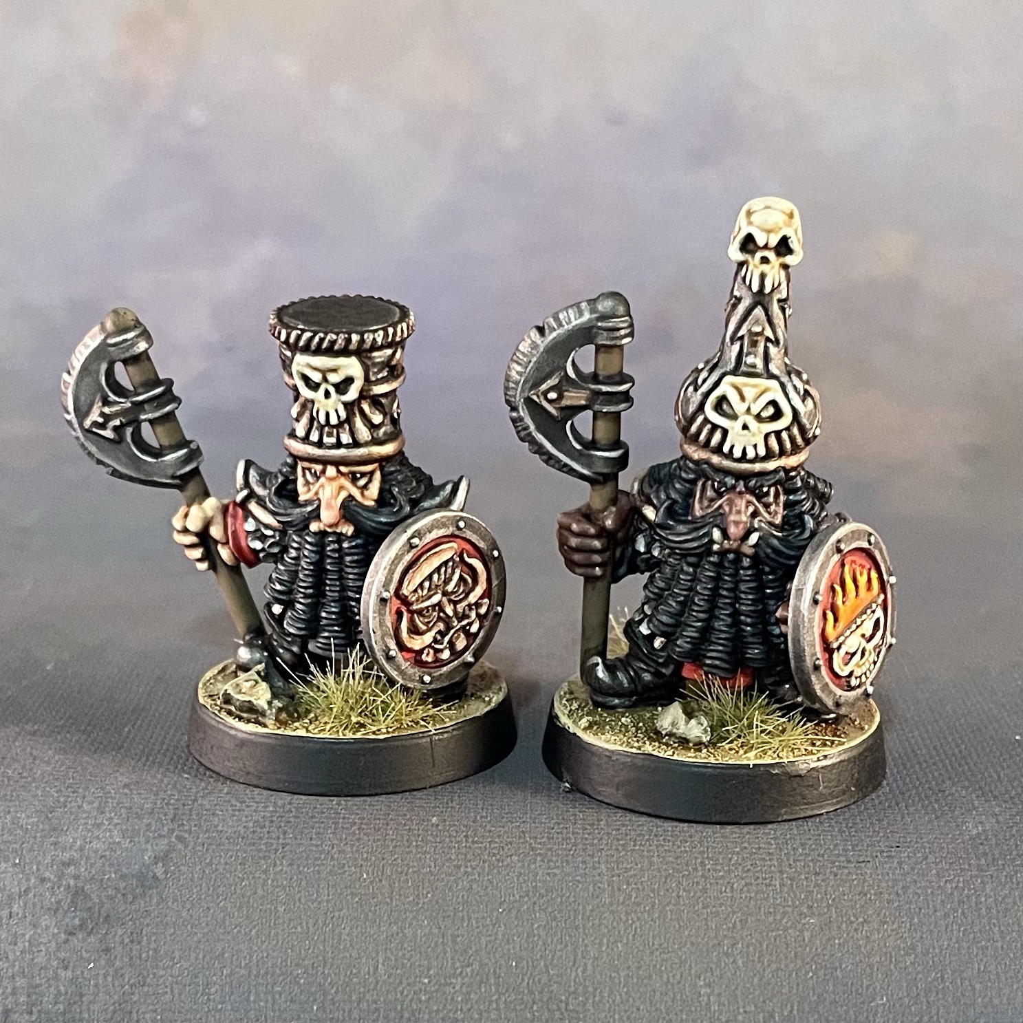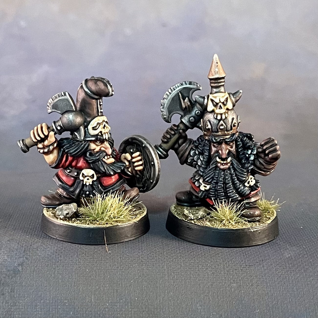 I painted these for use in Warcry. I expected Mannok Da Kunnin’s face to be difficult to paint given the metal basket around his head but it actually wasn’t so bad